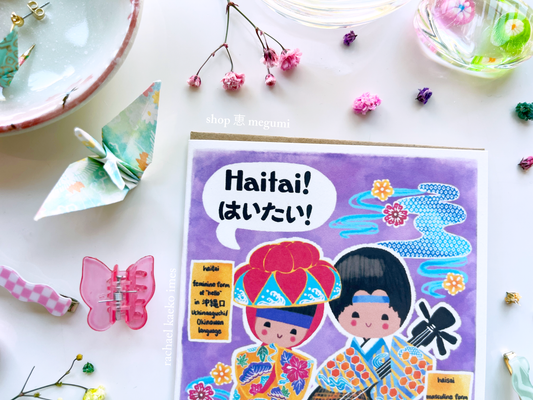 Haitai! Haisai! Uchinaaguchi Greeting Card | Cute Okinawan Greeting Card | Ryukyu Art | Okinawan Art | Uchinaaguchi Art